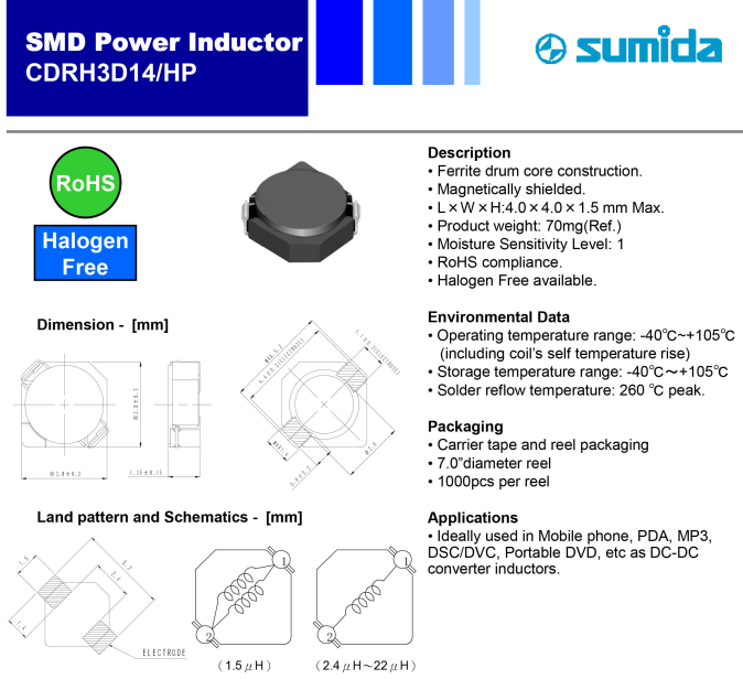 5.CDRH3D14HP最小包裝1KPCS 6.廣泛應(yīng)用于LCD、OLED顯示模組及其他各類電子儀器儀表