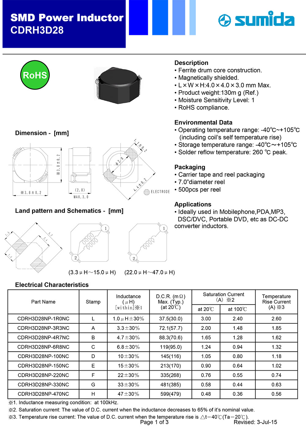 1.CDRH3D28磁屏蔽結構,傳統構造,散熱好