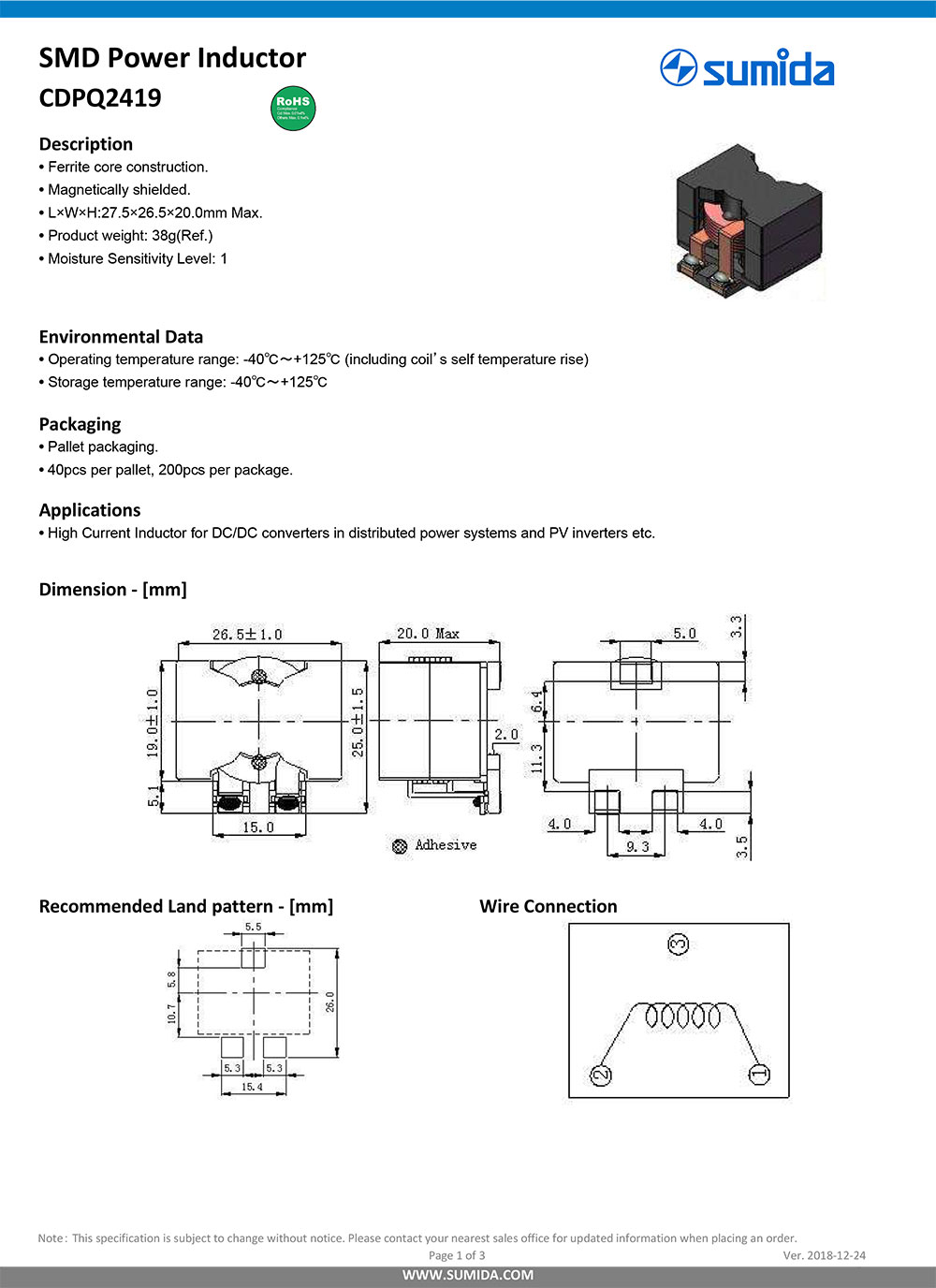 3.L*W*H--27.5*26.5*20mm 4.RoHS,最小包裝300PCS