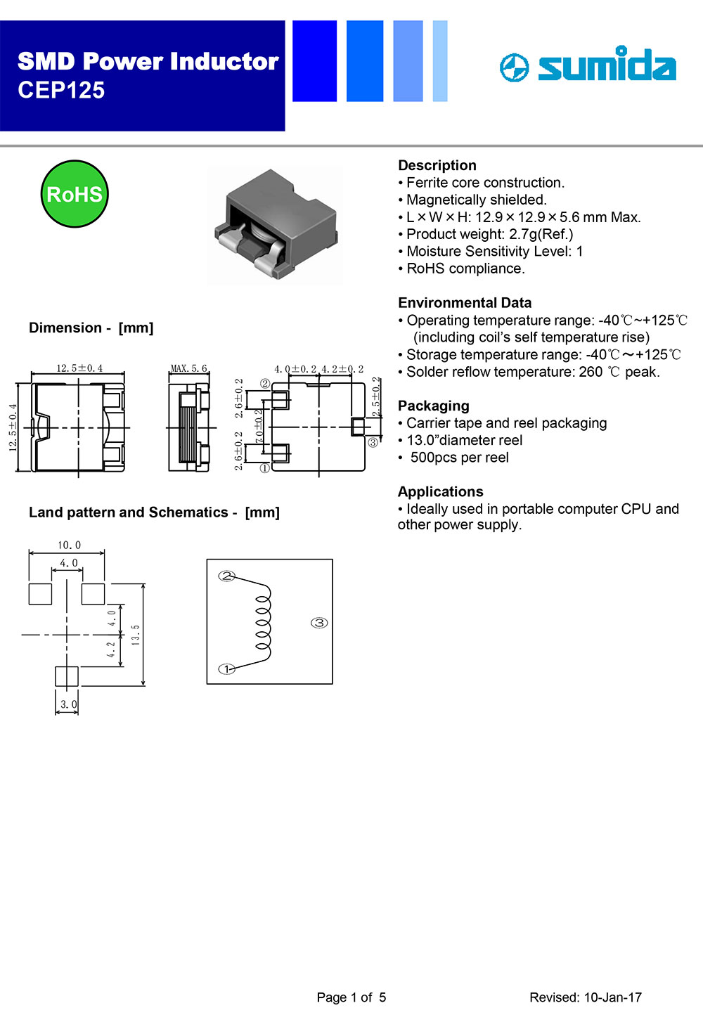 3.L*W*H--12.9*12.9*5.6mm 4.RoHS,最小包裝300PCS