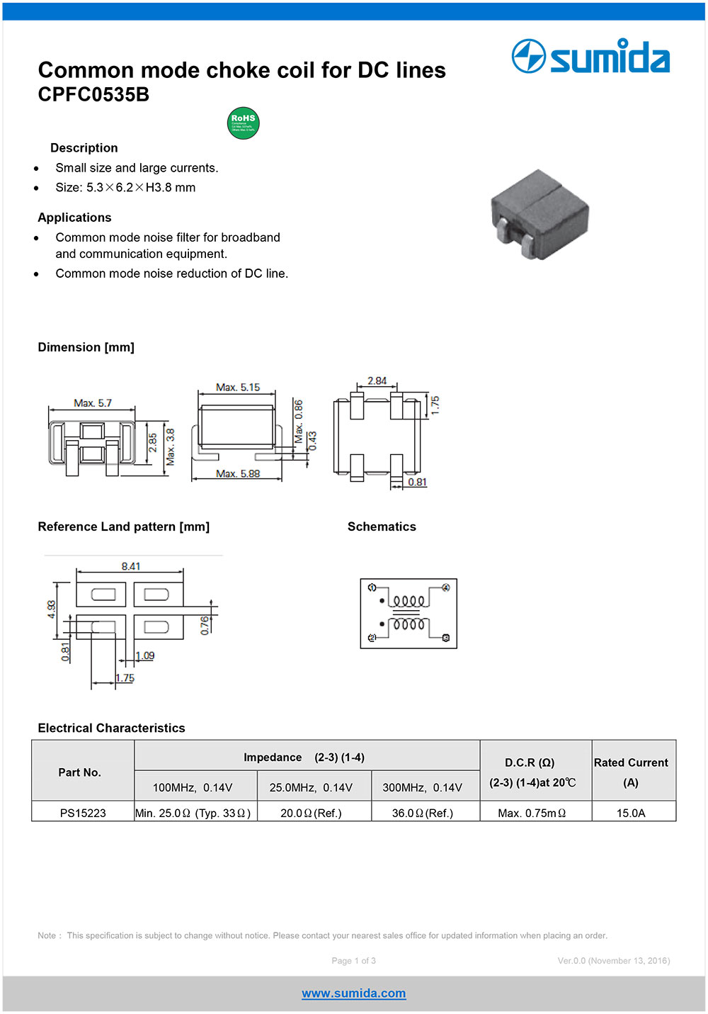 6.CPFC0535B廣泛用于通訊主機CPU供電的DC電源端口共模信號抑制等,也可用于各類設備有高性耐要求的DC電源端共模信號抑制。